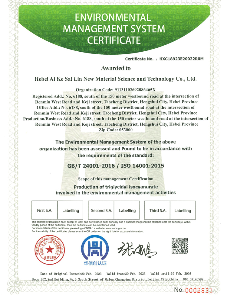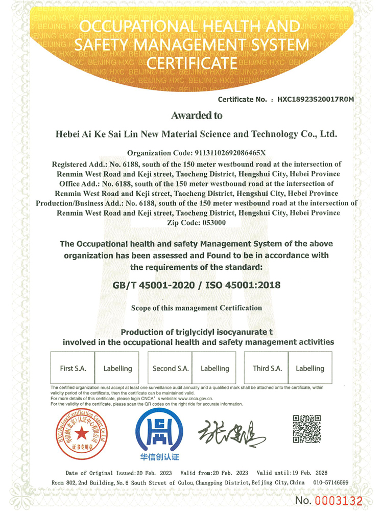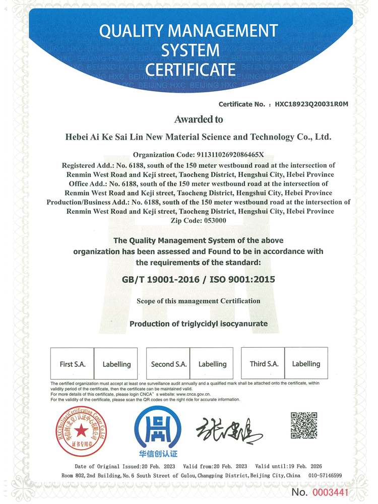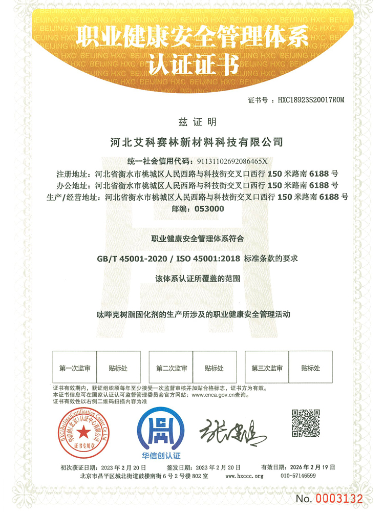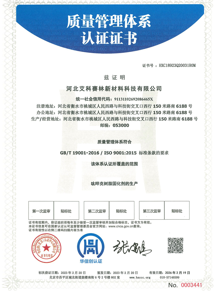 河北艾科賽林新材料科技有限公司成立于2009年,坐落在河北衡水桃城省級高新技術(shù)產(chǎn)業(yè)園區(qū),占地100畝,注冊資金2500萬元,是一家以粉末涂料固化劑及高性能特種材料研發(fā)、生產(chǎn)、銷售為一體的高新技術(shù)企業(yè)。在激烈的市場競爭中不斷壯大,產(chǎn)品憑借良好的信譽與精益求精的工藝,在市場中取得良譽和好評。公司已通過ISO9001質(zhì)量管理體系,IS014001環(huán)境管理體系、ISO45001職業(yè)健康安全管理體系。公司被認定為“高新技術(shù)企業(yè)”,河北省“專精特新”中小企業(yè),先后獲得河北省行業(yè)“技術(shù)創(chuàng)新先進企業(yè)”,桃城“校企合作創(chuàng)新優(yōu)秀企業(yè)”、畝均“納稅貢獻先進企業(yè)”等榮譽稱號......